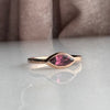 One thing we love at Ruby Pierce Jewelry is an east-west set Marquise cut stone. This ring is hand-sculpted with an east-west set Deep Rose colored, Marquise cut Tourmaline. An excellent addition to any stacking band situation, but also a stunner on it's own. Made in 14K rose gold and has a hammered texture. So Lovely!